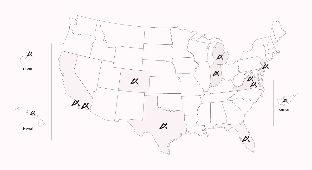 Accelint operates across the United States and allied partner nations, with facilities strategically located in defense technology hubs from Southern California to Washington, D.C. Our teams operate at the intersection of software, data, and mission outcomes, building the capabilities that shape tomorrow’s defense landscape.